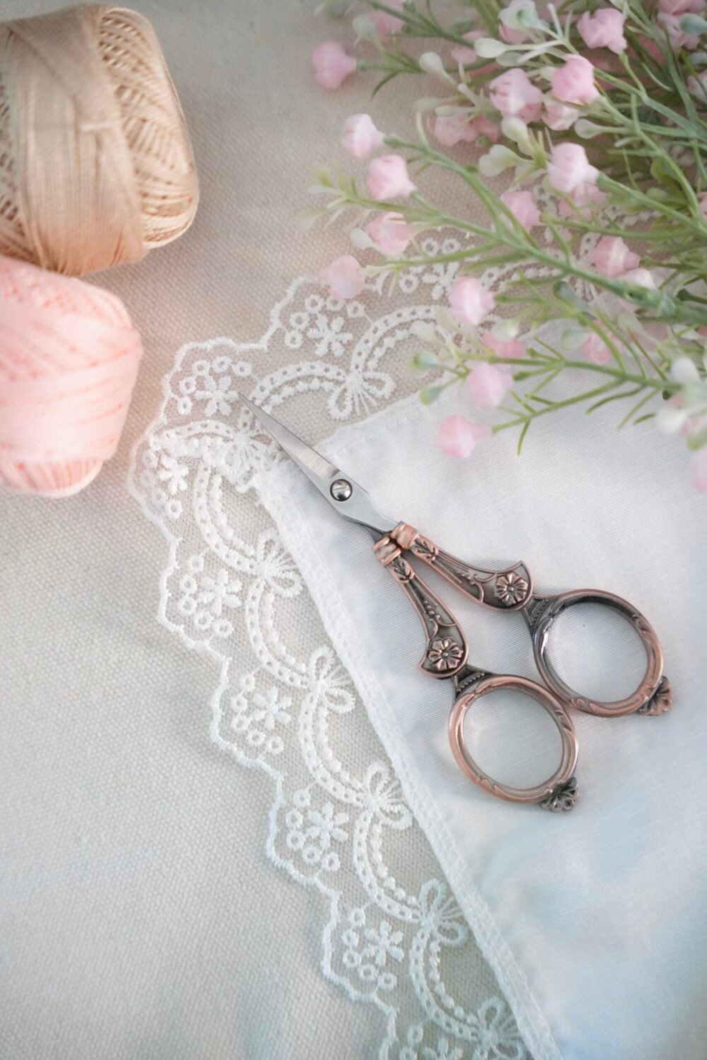 Small, sharp embroidery scissors with a charming vintage design for precise thread cutting.