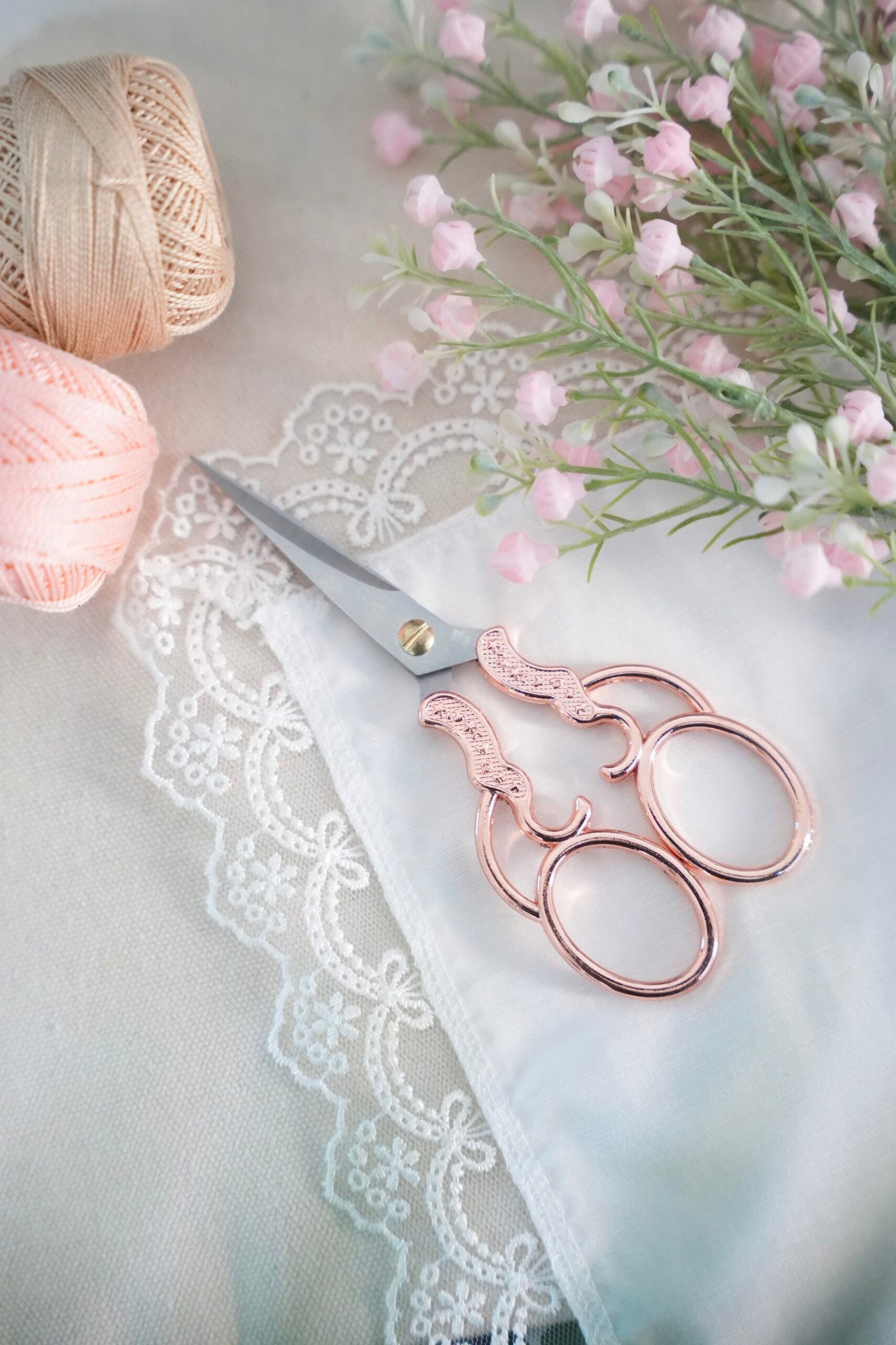Small, sharp embroidery scissors with a charming vintage design for precise thread cutting.