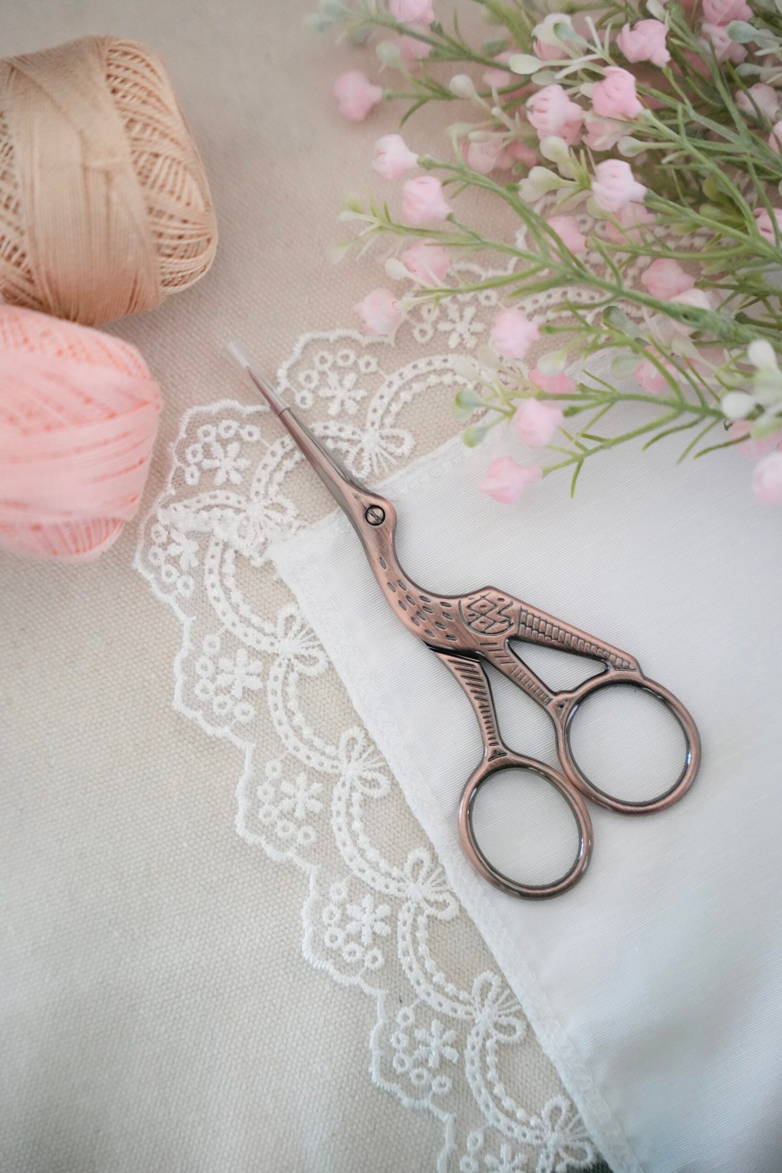 Small, sharp embroidery scissors with a charming vintage design for precise thread cutting.