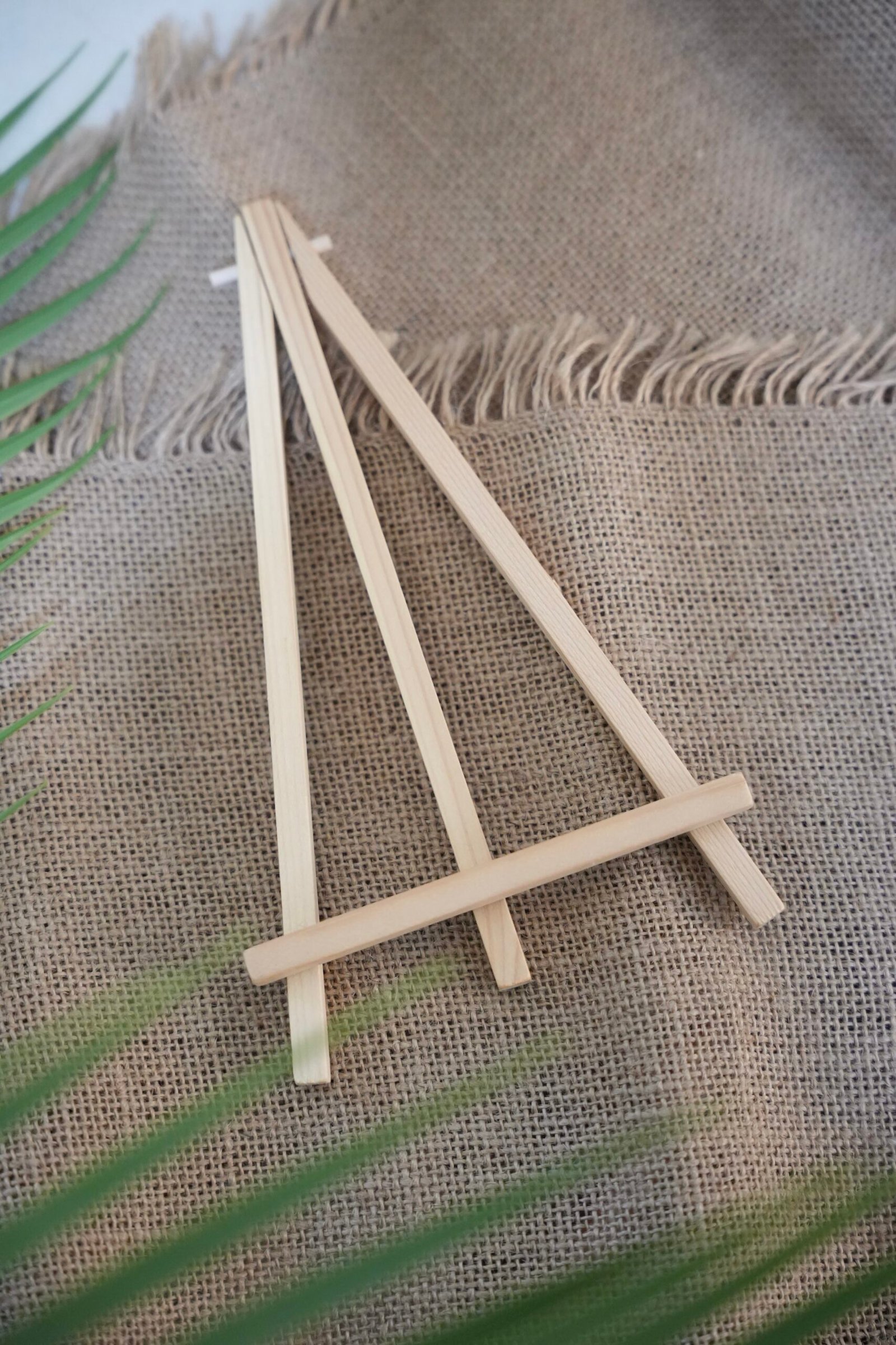 Add a touch of elegance and simplicity to your products or decor with this mini wooden display stand, crafted from natural light-colored wood. It features a practical and minimal design that folds easily, making it perfect for displaying embroidery hoops, greeting cards, small art pieces, photos, notebooks, or signage at events and exhibitions.